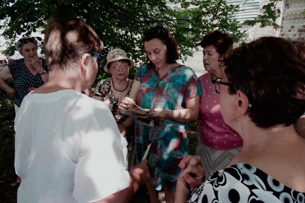 Ostatni etap działań projektowych – spacer po Fastach. W upalne popołudnie, 29 czerwca 2022 roku, odbył się spacer połączony z piknikiem, na który przyszły byłe pracownice Fast oraz mieszkańcy Białegostoku. Goście przynieśli ze sobą różne smakołyki, a salki na poczęstunek użyczyła nam istniejąca na terenie dawnych Fast firma Andropol. Podsumowaliśmy projekt „Fasty moja miłość” i wspólnie nanieśliśmy poprawki na mapę BZPB Fasty. Mapa została opublikowana na stronie http://fasty.skorko.pl/. Podczas spotkania obejrzeliśmy przyniesione przez uczestników albumy z archiwalnymi fotografiami, identyfikując na nich współpracowników uczestników naszego spotkania. Udało nam się też porozmawiać z osobami, z którymi planujemy nagranie kolejnych wywiadów. Umówiliśmy się na spotkanie w październiku oraz na następne warsztaty kreatywności (dofinansowanie na to działanie dostaliśmy z Miasta Białystok).